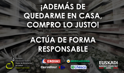 Dada la situación de Emergencia sanitaria como consecuencia del Plan de Protección Civil de Euskadi (LABI), y la entrada en vigor del Real Decreto por el que se declara el estado de alarma para la gestión de la situación de crisis sanitaria ocasionada por el COVID-19, el Departamento de Desarrollo Económico e Infraestructuras del Gobierno Vasco, el Clúster de la Alimentación de Euskadi y las principales firmas de comercio en alimentación en Euskadi, Carrefour, Eroski, Mercadona y Uvesco, han acordado emitir el siguiente mensaje a la ciudadanía: